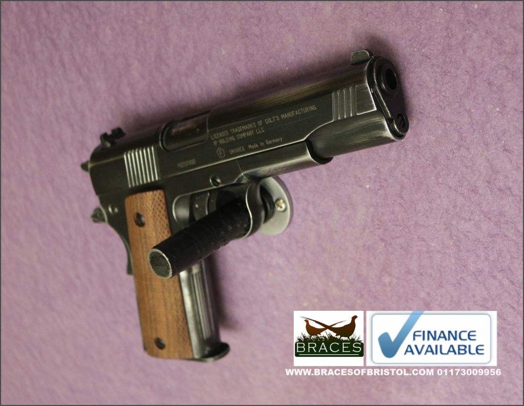 Excellent Limited Edition version of the great Colt 1911, comes standard with real wood handles, in hard carry case with two rotary mags.
