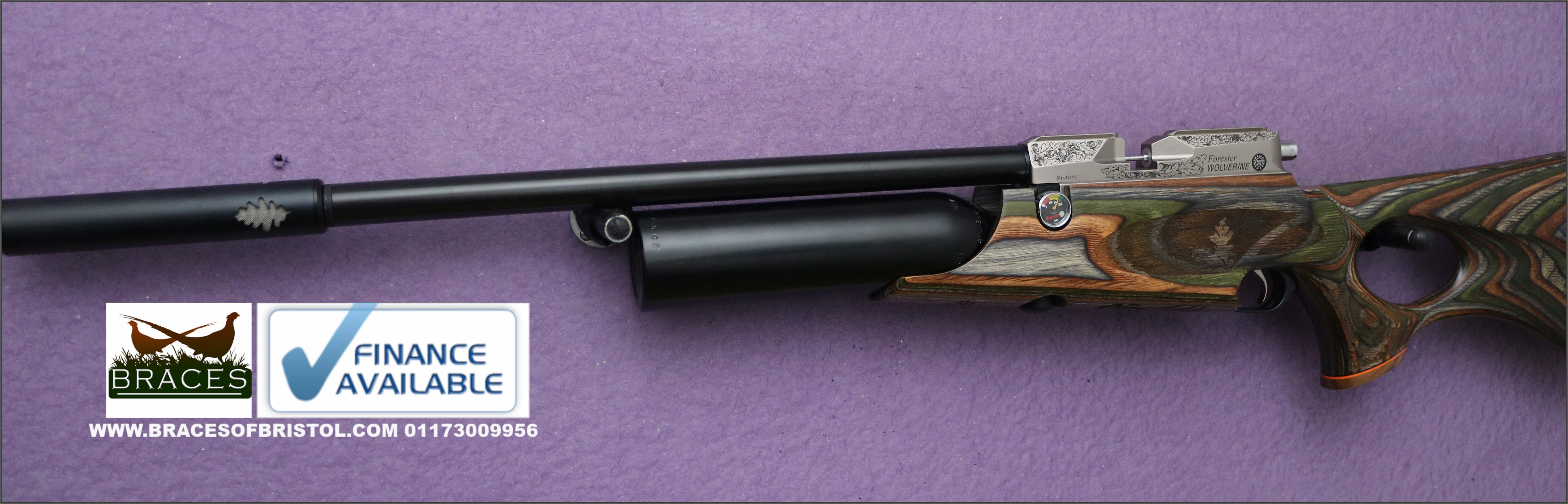 Fantastic condition Daystate Wolverine Forester B type number 81 of 170 guns made, gun comes with certificate, one magazine, Huggett snipe moderator and original hard case and fill adaptor.