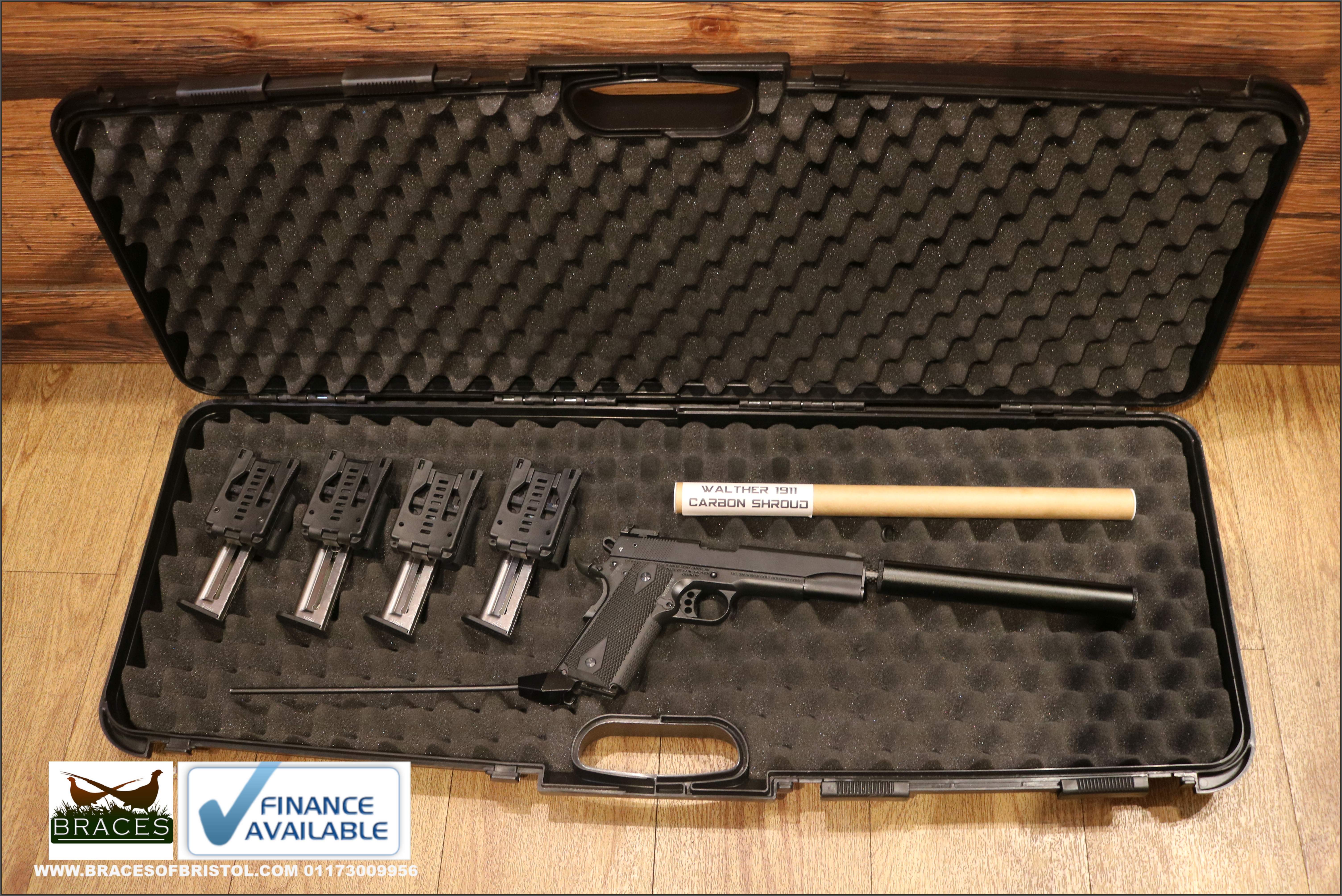 Walther Gold Cup, good overall condition complete with hard case, 4x magazines with 4x belt-clip mag holders.